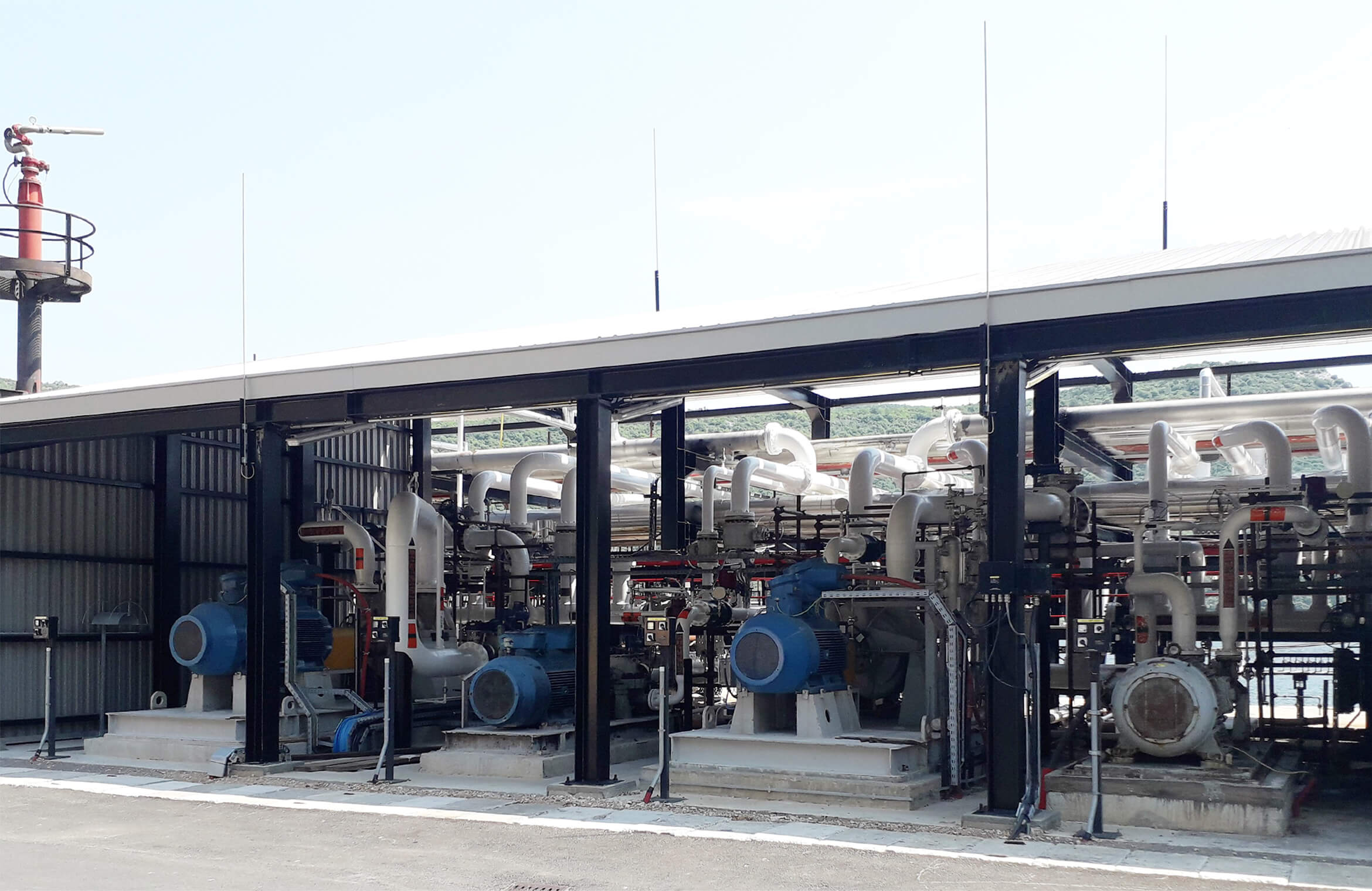 Strojarsko-tehnološkim projektom rekonstruirana su 3 operativna pristana s ugradnjom 6 novih istakačkih ruku, 10 novih mjernih linija, preko 130 manipulativnih cjevovoda visoke razine opasnosti za 15 različitih derivata na pristanima i cijevnom mostu te pumpaona u koju su ugrađene 3 nove centrifugalne pumpe. Elektroprojektom rekonstruirane su elektroinstalacije na operativnim pristanima te energetski kanal uz zamjenu napojnih kabela svih potrošača u sklopu modernizacije tankerske luke Bakar.