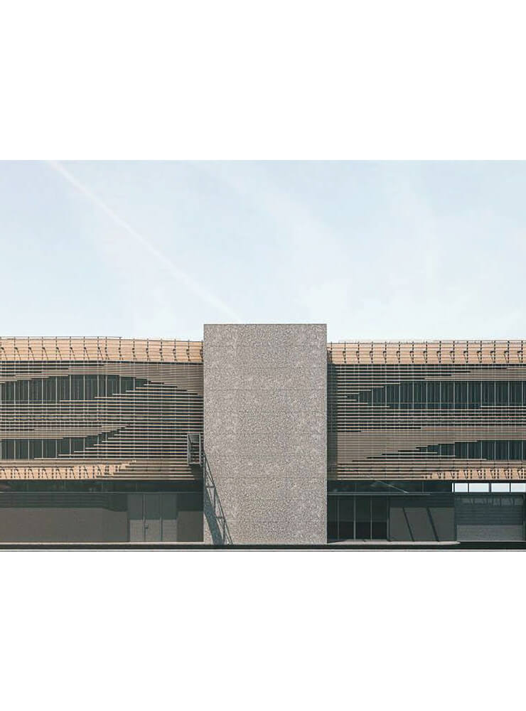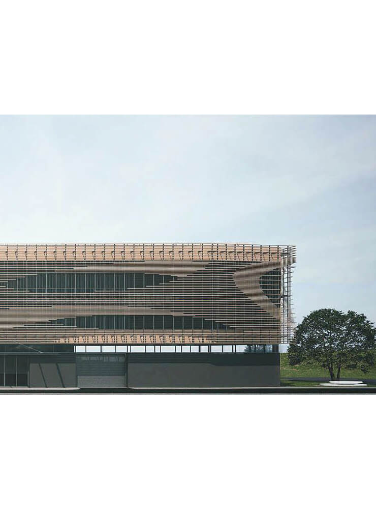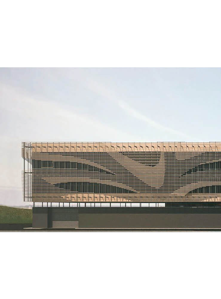 Djelatnost Tehnološkoga centra drvne industrije obuhvaća izradu uzoraka i prototipova proizvoda od drveta te ispitivanje rješenja i kvalitete u fazama njihovoga razvoja. Longitudinalna tlocrtna dispozicija i oblik objekata uvjetovani su oblikom parcele i tehnološkim procesom. Proizvodni pogon u prizemlju oblikovan je kao puni volumen koji je cenzurom nadsvjetala dilatiran od gornjega volumena ureda, radnih prostora i ispitnoga centra u drvenoj oblozi.